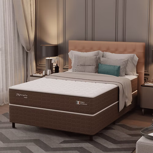 Conjunto Cama Box e Colchão Mercúrio Pocket Casal com preço promocional.